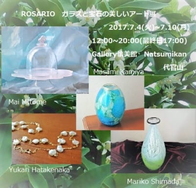 ROSARIOでは、『ガラスと宝石の美しいアート展』を開催します。 2017.7.4(火)~7.10(月) 12:00~20:00 (最終日17:00まで) Gallery 懐美館(Natsumikan) 代官山 ●わかりやすい印刷用の地図は、ギャラリーのホームページを... -
